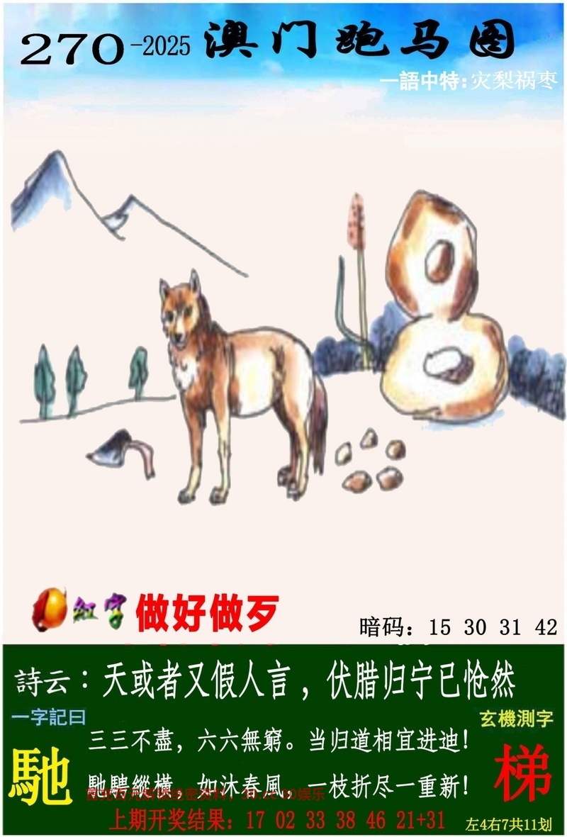 270期:男女中特 ╠女肖╣ 开:羊35中 |